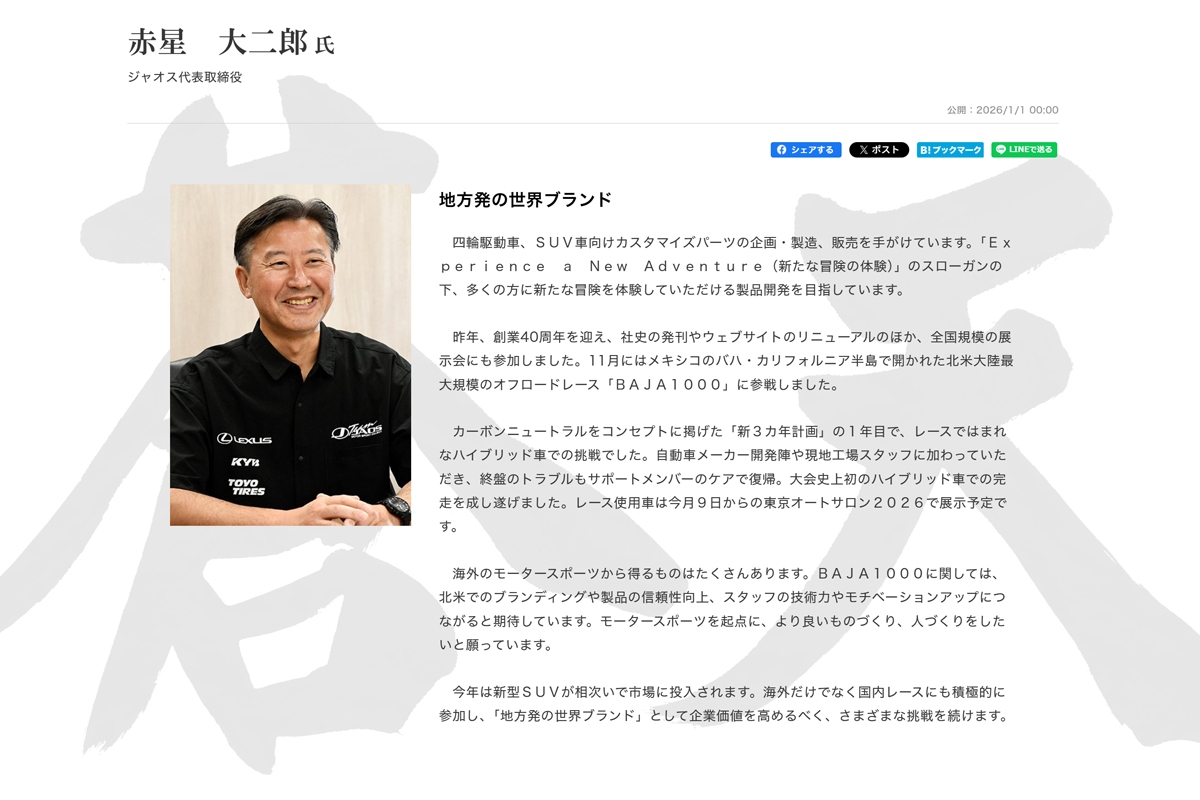 元旦の弊社地元紙・上毛新聞 新春企画「トップインタビュー2026」にて、弊社代表の記事が掲載されております。
