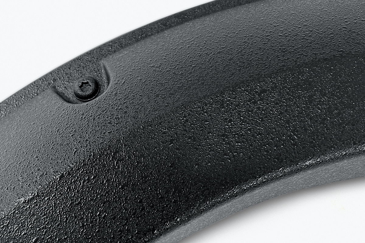 エクストレイル T32系/T33系&キャラバン E26系用「JAOS フェンダーガーニッシュ type-X」に、耐衝撃性を高める塗装を施した“タフブラック” 仕様を新たに追加設定します。この“タフブラック” に使用している塗料は、耐衝撃性を必要とするピックアップトラックの荷台部分にも使用できる耐久性を備え、独特な質感の塗装表面が力強さを引き立てます。また、定番の未塗装品※1と発売以来ご好評をいただいている「マットブラック※1(シボ塗装)」も引き続き設定し、さまざまなカスタマイズに対応するラインアップとなっています。なお、この商品は日産の各ディーラーで「SOTOASOBIパッケージ」※2としてお取り扱いいただいております。