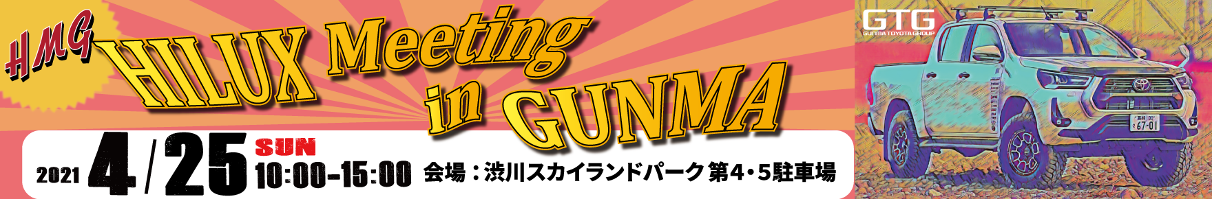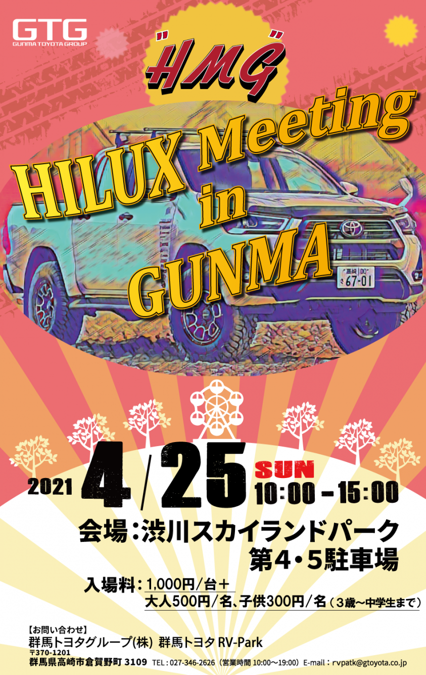 群馬トヨタ自動車(株)RV-Park主催の「"HMG" HILUX Meeting in GUNMA」が4月25日(日)に開催されます。