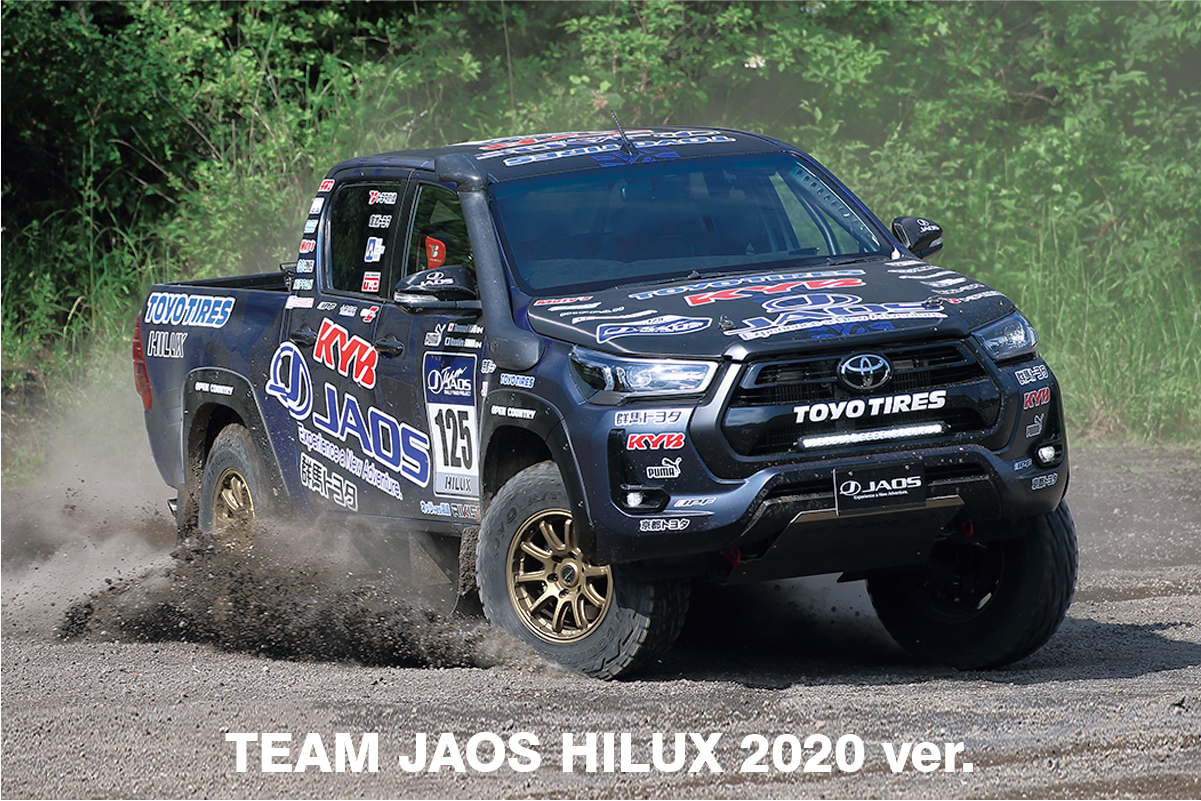 JAOSからは、アフターコロナでのラリー参戦を目標に掲げる「TEAM JAOS HILUX 2020 ver.」と、今年リリースしたばかりの "JAOS オーバーフェンダー type-X(片側+25mm)" のほか、注目のアイテムを多数装着した「NEW HILUX JAOS ver.」の2台を展示いたします。当日は、TEAM JAOSドライバーの能戸知徳およびスタッフによる最新情報のご案内やカスタマイズ相談を受け付けますので、この機会にぜひご来場ください。
