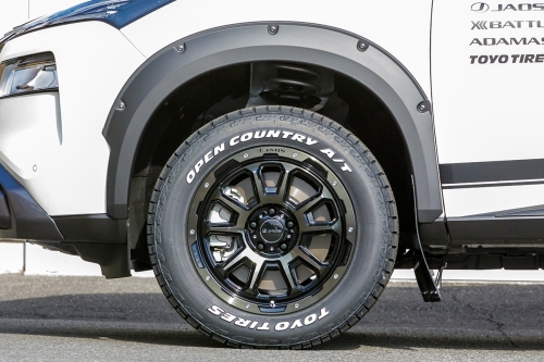 ボディにリベット打ちで固定されたオーバーフェンダーは、4WDのワイルドさをより引き立たせます。しかし、ボディ外側に穴を開けることに抵抗を感じる方も少なくはありません。そこでJAOSオーバーフェンダー typeXにはボルトの頭だけの形をした樹脂製ダミーボルトを採用。オーバーフェンダー本体に両面テープで留めるだけです。オーバーフェンダー本体の装着は両面テープや目立たない場所への固定など(商品ごと異なるため仕様欄を参照ください)としています。