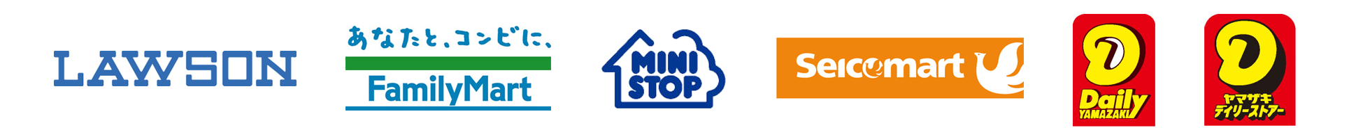 ご利用可能なコンビニエンスストアは以下のとおりです。