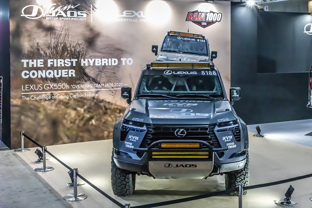 恐らく世界初であろうLEXUSハイブリッドモデルの「GX550h "OVERTRAIL"」をベースマシンに採用。参戦クラスは必要最低限の改造のみが許される市販車ベースの「Stock Full Class」です。これまで土埃とは最も遠い存在と思われがちなハイブリッドモデルを過酷なオフロードモータースポーツに挑戦させ、SCORE BAJA 1000を走破することで、その性能と今後の可能性を実証いたします。