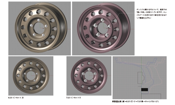 そして前記したキーワード「虚飾を排した質実剛健」を突き詰めているうちに、「究極の質実剛健て…スチールホイールじゃない?」に行きついたワケです。(スチールホイールをそのままアルミ化してみたら面白いじゃん…ってアソビゴコロも少しありました笑)