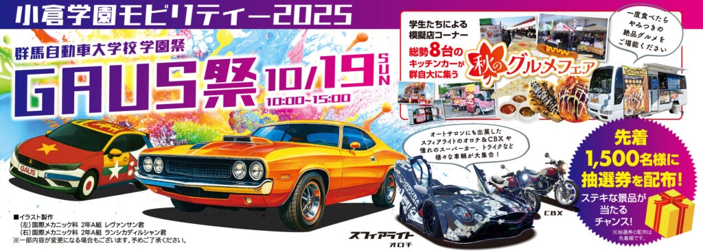 10月19日(日)は弊社地元である群馬県にある群馬自動車大学校(GAUS) 主催の学園祭「GAUS祭」が開催されます。