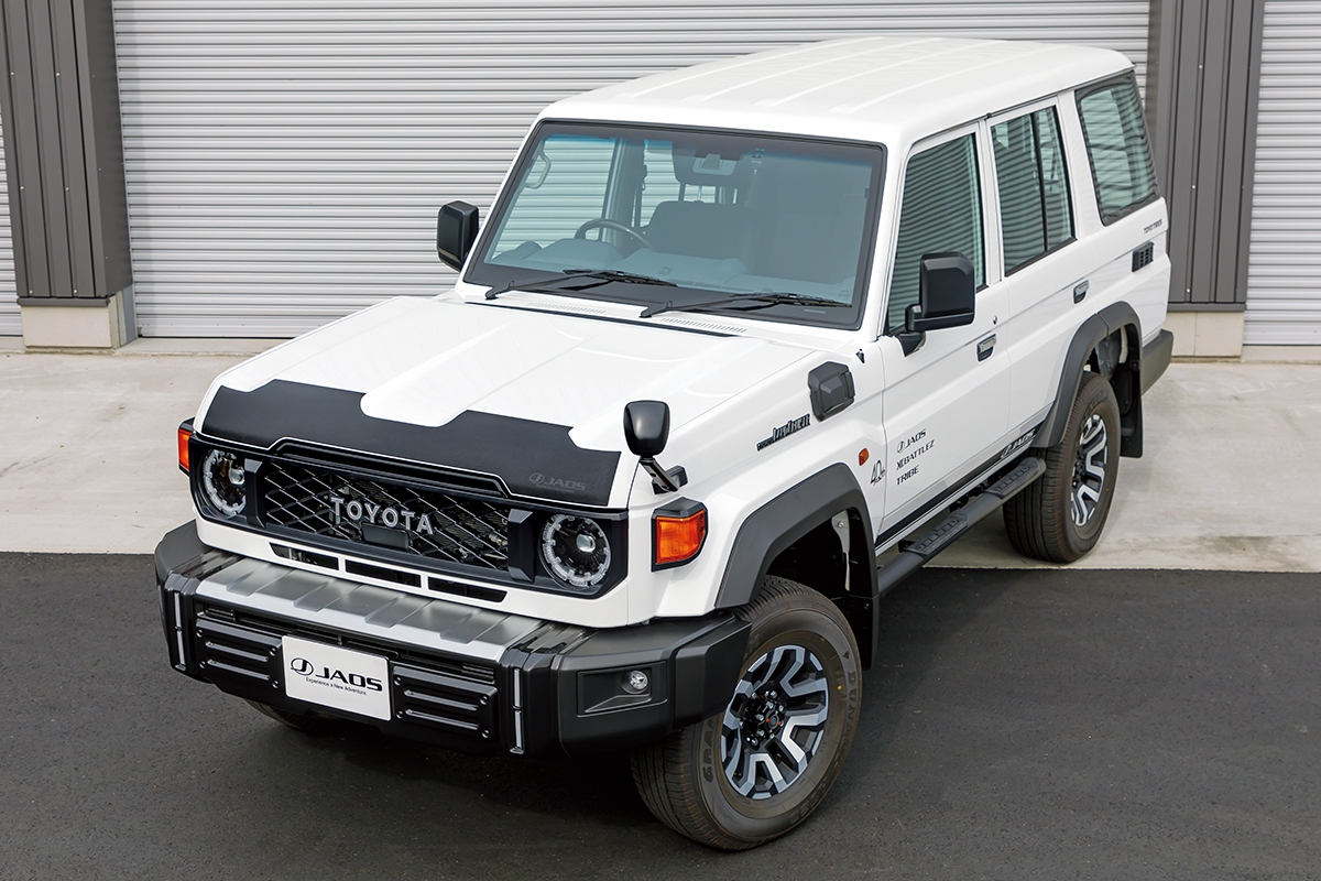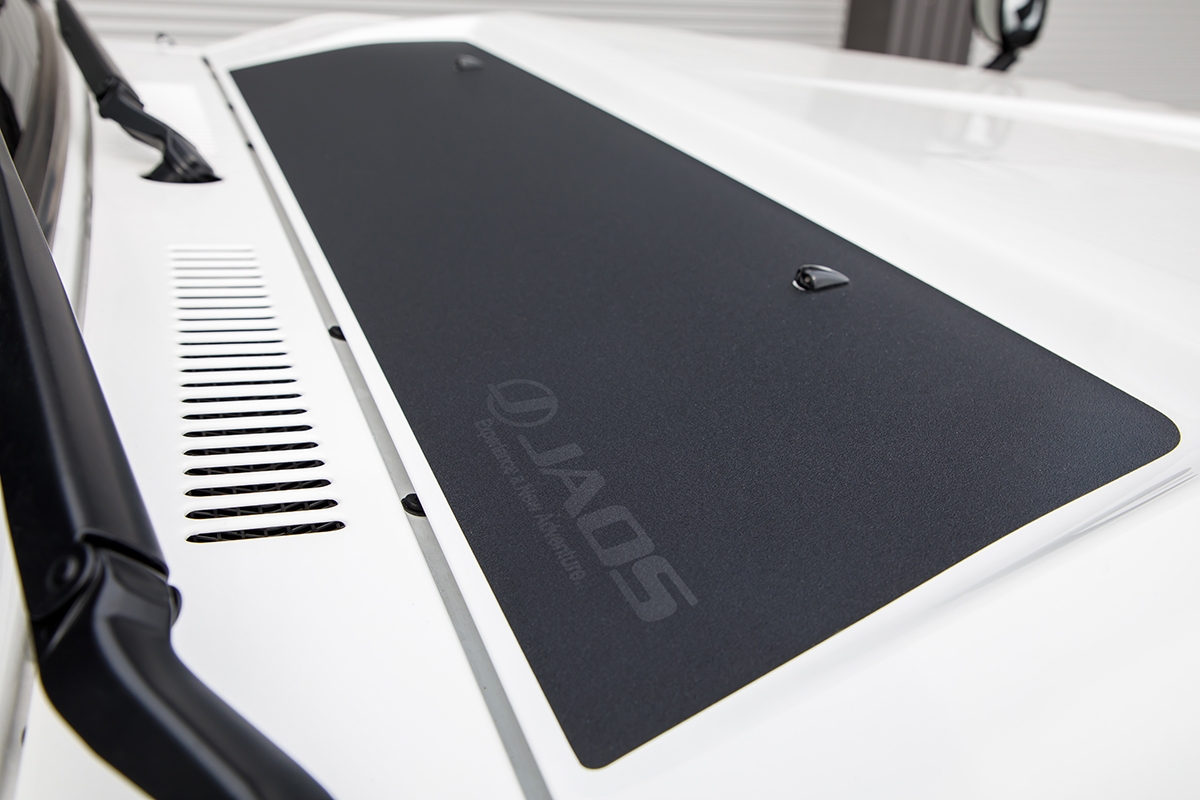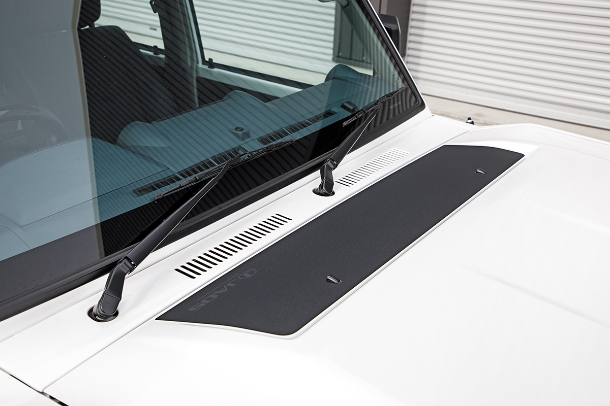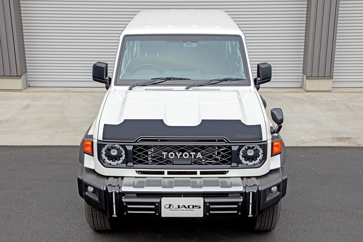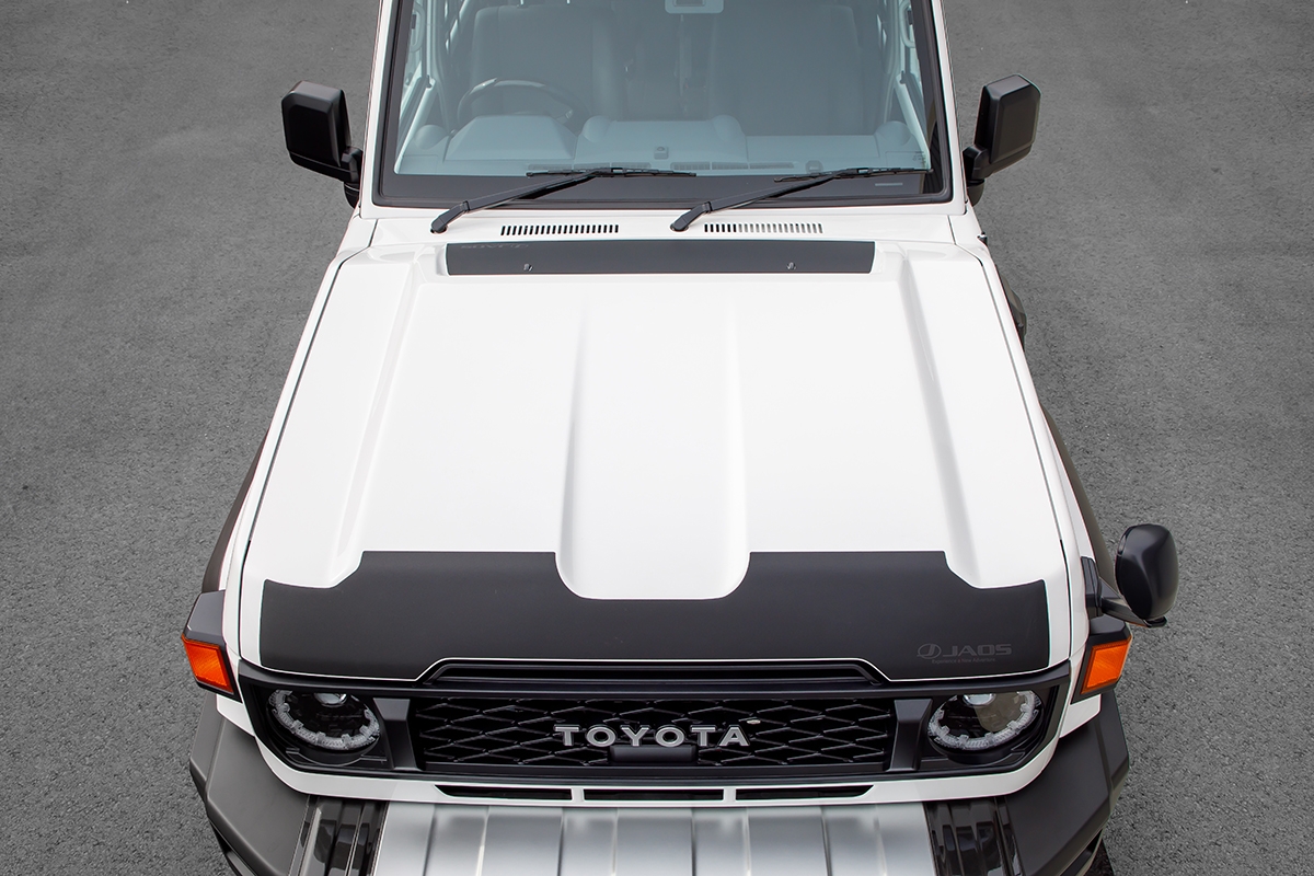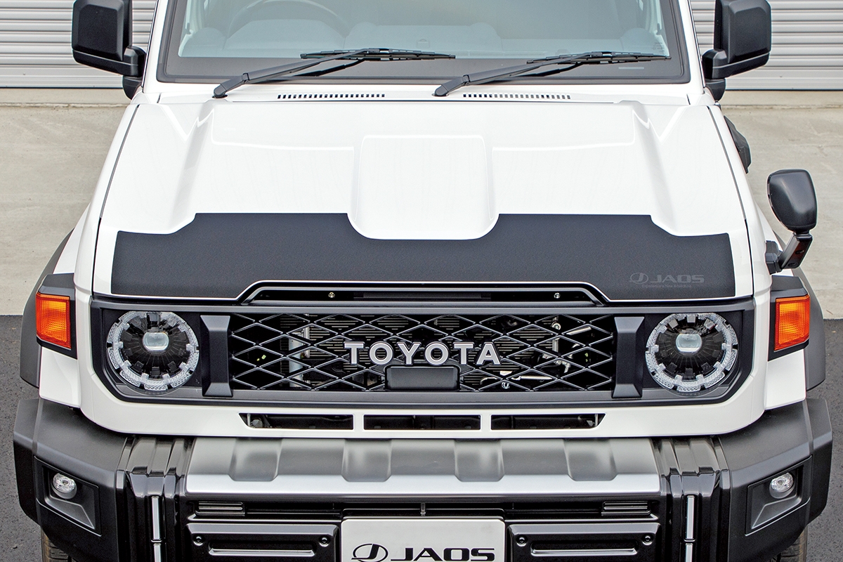 ボンネットラインに沿った車種専用形状で、シンプルながらもたくましく、力強いクロカンスタイルを付与します。