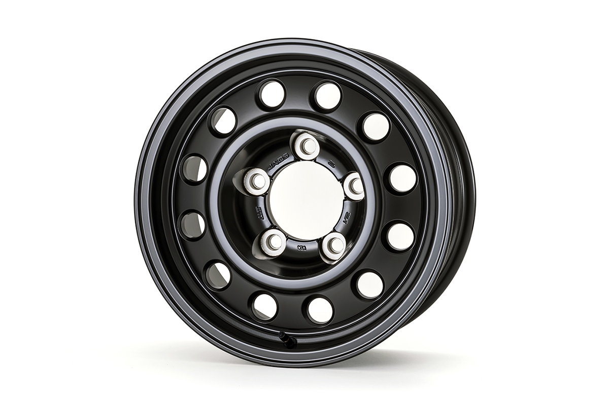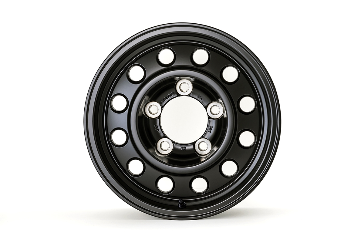 スチールホイールをモチーフとしたデザインに、マットブラックカラーを採用。伝統的な無骨さと堅牢な存在感を際立たせます。