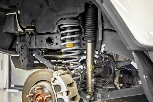 チタン配合材を使用したヘタリ保証付きのコイルスプリングとハーモフレック®機構を搭載した高性能ダンパーを組み合わせたリフトアップキットです。リフトアップ量はフロント40~45mm、リヤ35~45mm。「柔らかいけどコシがある」という特性を持つチタン配合材を使用したコイルスプリングがSUVらしいシルエットを実現。さらに、コイルスプリングには長期間の使用でも安心のヘタリ保証を付帯しています。乗り心地と操縦安定性を高めるダンパーは、減衰力を切り替えられるダイヤル(14段ダイヤル調整式)を装備した「BATTLEZ ダンパー VFA」。さまざまなドライビングスタイルや走行シーンに応じたセッティングを可能にします。