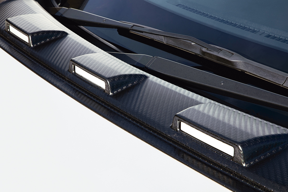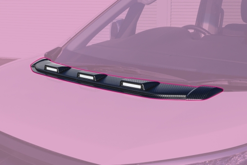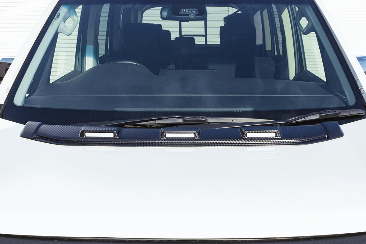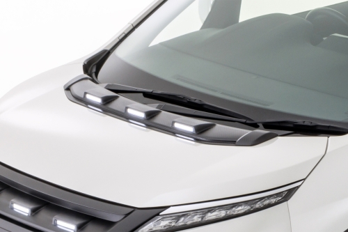 アメリカンSUVのテイストを彷彿とさせる3連オリジナルLEDランプが迫力のフロントビューを実現します。本体は未塗装で装着できるカーボン調AES製。さらに、車内からも装着している雰囲気を実感することができ、カスタマイズの満足度を高めるアイテムです。本体に埋め込んだLEDランプは「その他灯火類」としているため、法規上の心配をすることなく装着していただけます。
