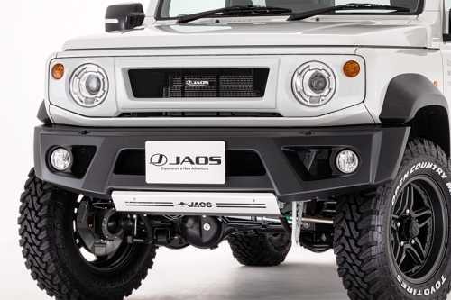 純正オーバーフェンダーのボリュームを保ったままJAOS スポーツカウルに流れを繋ぎ、どこから見ても違和感なく調和するよう造形にこだわりました。JAOS スポーツカウルの特徴であるクロスカントリービークルをイメージしたデザインが、純正バンパーとは一味違う軽快な印象を与えます。
