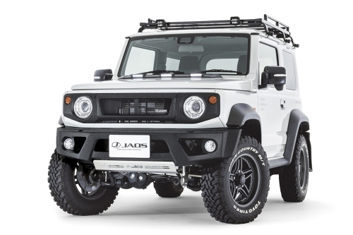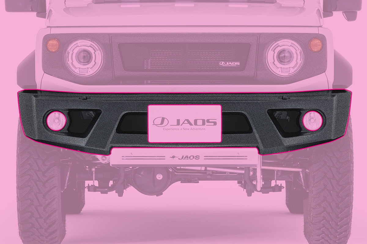 クロスカントリーバンパーをモチーフにしたオリジナルの樹脂製バンパーに耐衝撃性をプラスした“タフブラック”仕様のバンパーです。“タフブラック”仕様に用いた塗料は、耐衝撃性を必要とするピックアップトラックの荷台部分にも使用できる耐久性を備えます。さらに、カスタム性の高い塗装の表面は意匠性にも優れる高品質な塗料です。シンプルながら本格的な4WDクロスカントリー車でもあるジムニーのスタイルを引き立てます。