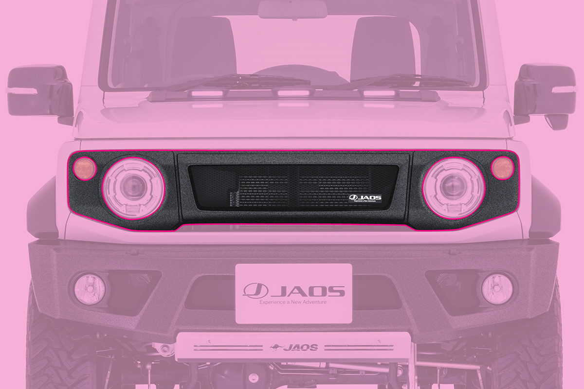 純正交換でスマートな装着を実現。開口部からヘッドライトをカバーする部分まで丁寧に造形されたデザインにより、車両の雰囲気をスポイルすることなくスポーティな印象を与えるフロントグリルです。“タフブラック”仕様に用いた塗料は、耐衝撃性を必要とするピックアップトラックの荷台部分にも使用できる耐久性を備えます。さらに、カスタム性の高い塗装の表面は意匠性にも優れる高品質な塗料です。シンプルながら本格的な4WDクロスカントリー車でもあるジムニーのスタイルを引き立てます。