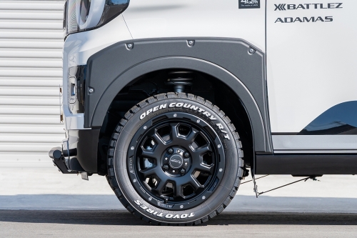 ボディにリベット打ちで固定されたオーバーフェンダーは、4WDのワイルドさをより引き立たせます。しかし、ボディ外側に穴を開けることに抵抗を感じる方も少なくはありません。そこでJAOSオーバーフェンダー typeXにはボルトの頭だけの形をした樹脂製ダミーボルトを採用。オーバーフェンダー本体に両面テープで留めるだけです。オーバーフェンダー本体の装着は両面テープや目立たない場所への固定など(商品ごと異なるため仕様欄を参照ください)としています。