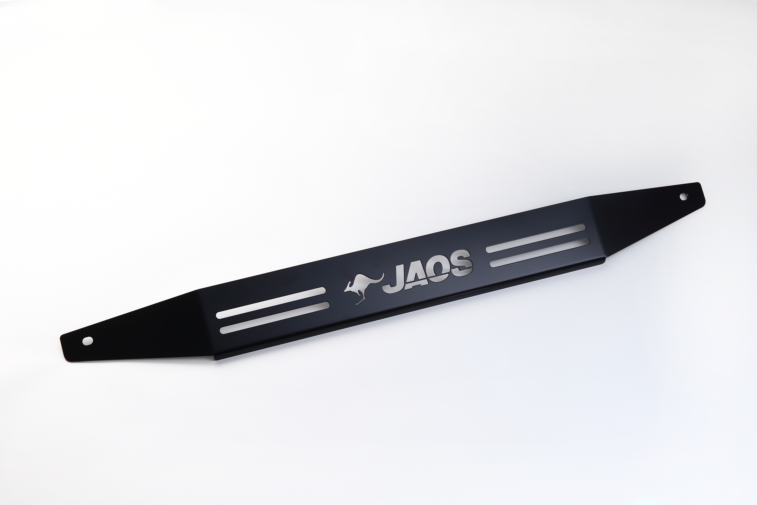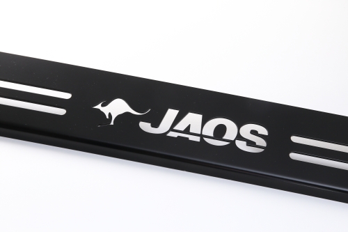 精緻にレーザーカットされたJAOSロゴがリヤビューにアクセントを加えます。ステンレス製の本体にはブラック塗装を施してワイルドな雰囲となっています。スキッドバーシリーズのブラックバージョンや、ブラックサイドステップとの相性も抜群です。
