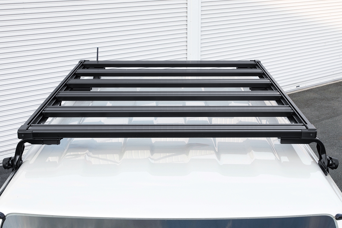 本体は軽量かつ強固なアルミ押し出し材を採用し、車両重量の増加を抑えながらもハードユースを想定したタフネス仕様。フロアバーに設けたTスロットにオプションを装着することにより、用途に合わせたアレンジや自分好みのスタイルへ拡張することができます。多彩な機能性と信頼の“MADE IN JAPAN”にこだわった高品質なルーフラックです。