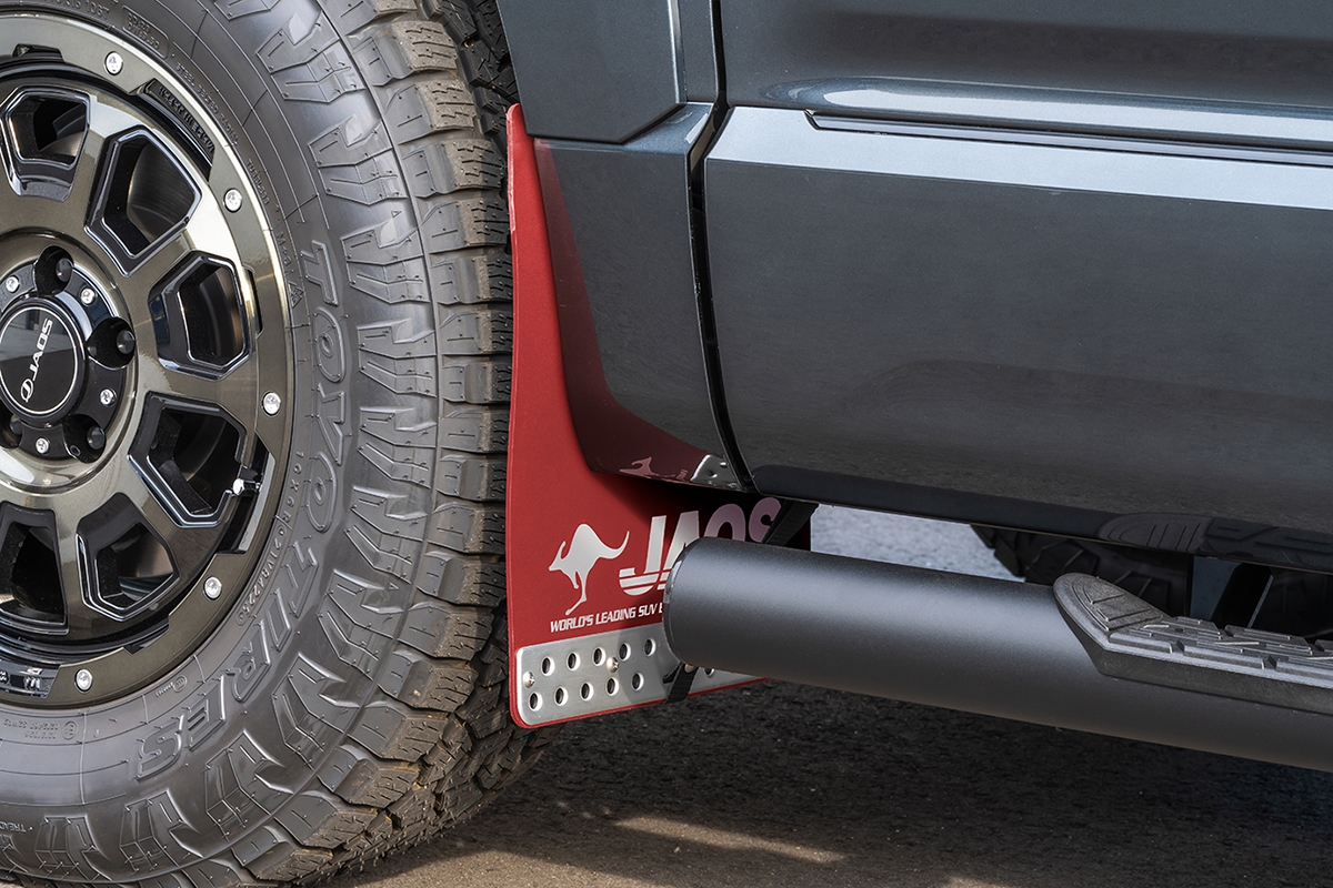 | 仕様 | ・マッドガード本体:EVAシート ・ハンガーベルト:PP(ブラック) ・ハンガーベルトプレート:アルミ ・ブラケット:スチール(カチオン電着塗装) |