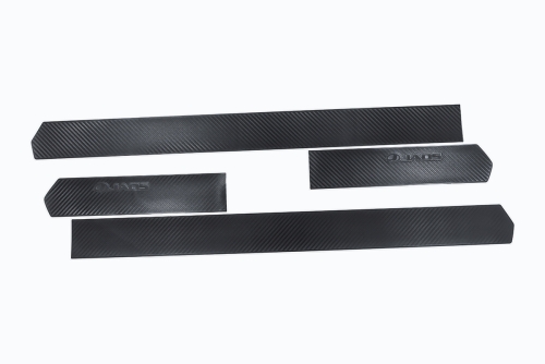 乗降時に足をぶつけやすいサイドシルをしっかりガードすると同時に、カーボン調のデザインがスポーティな印象を与えます。形状に合わせてカットされた専用設計で、強力な粘着面で接着するため簡単に剥がれることなくしっかり貼付けることができます。