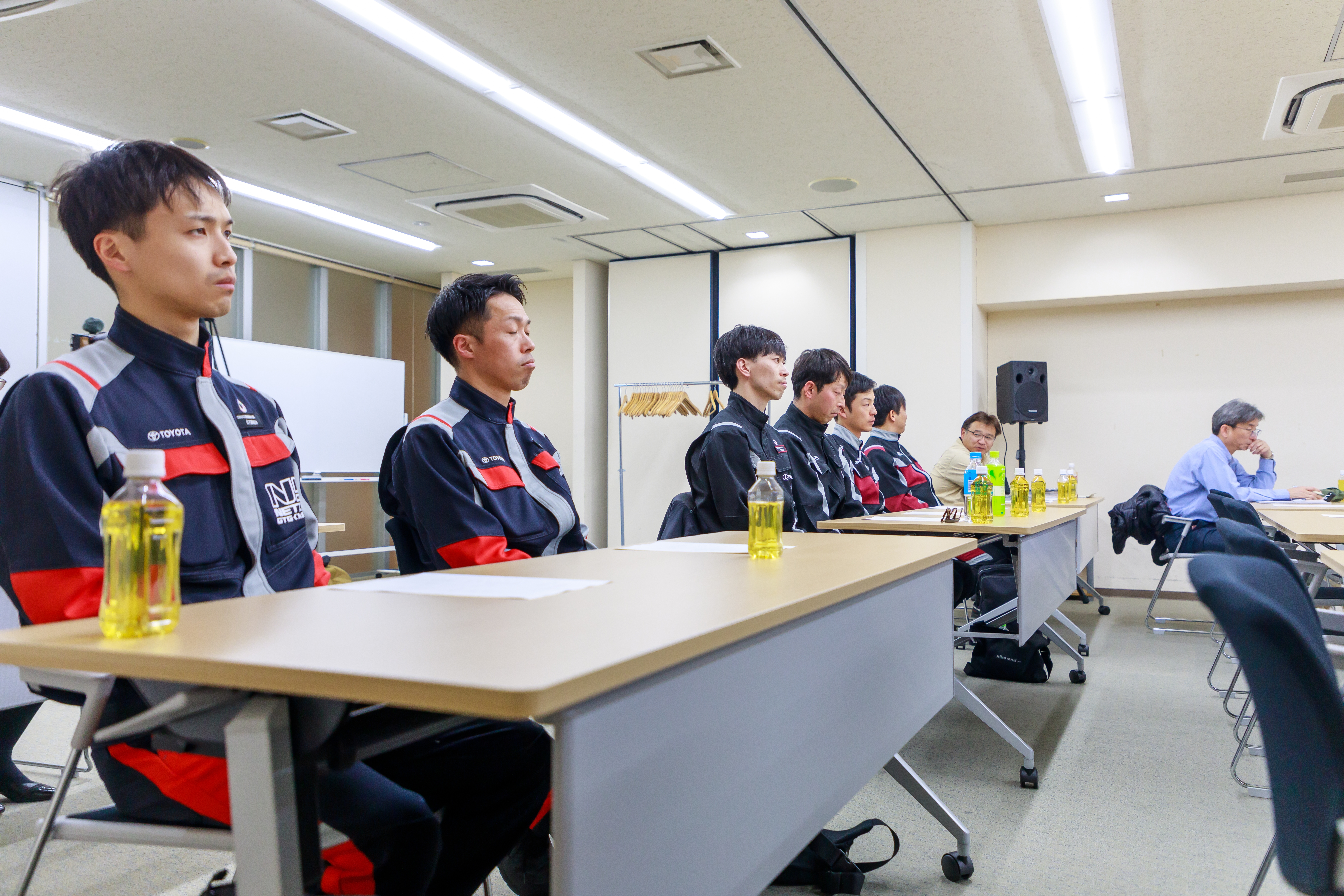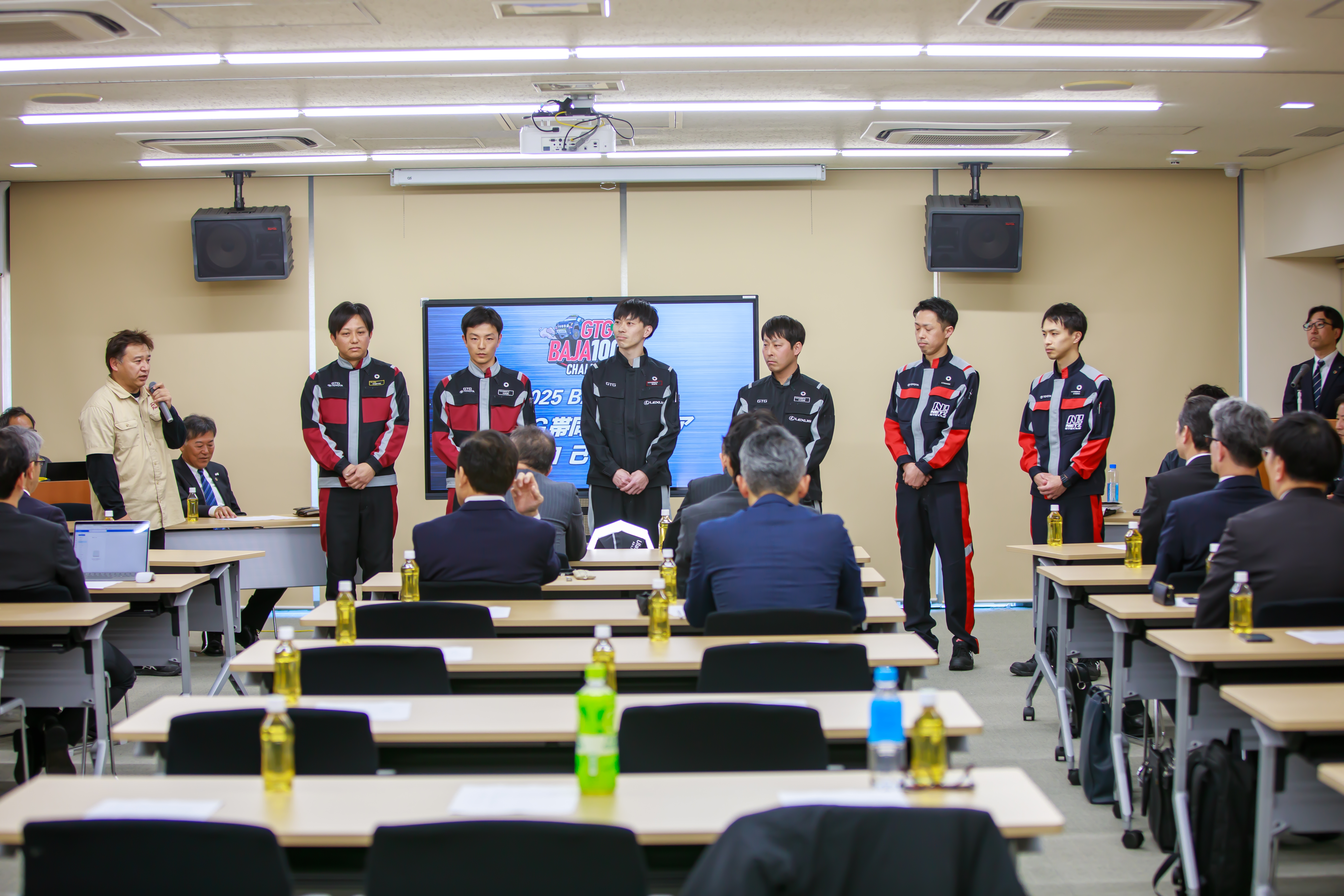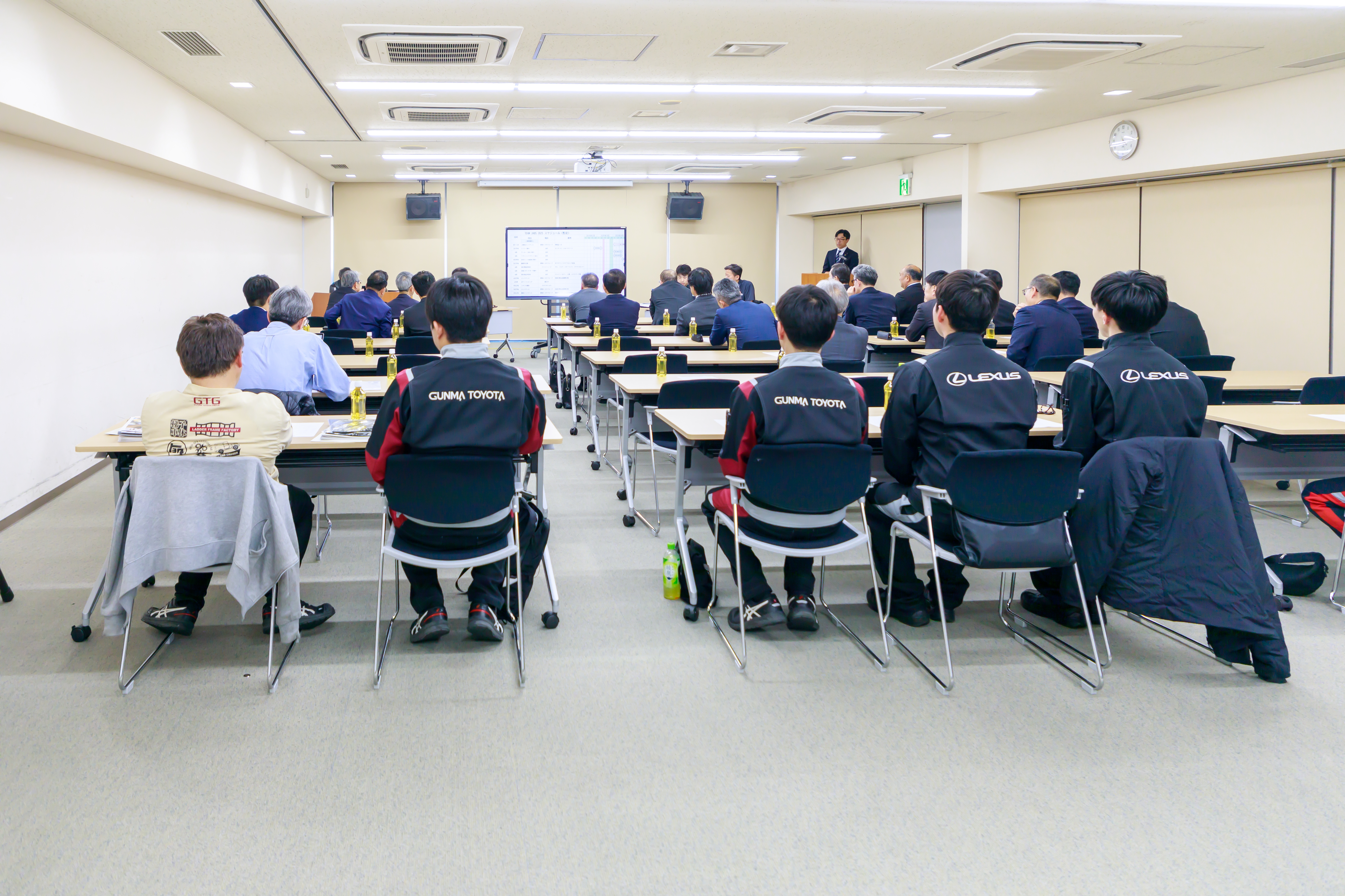 群馬トヨタグループから派遣されるエンジニアは、実際に現地に帯同するメンバーがこの春から車両製作やメンテナンス作業を行い、本戦に向けて準備をして参ります。今年は昨年から引き続き継続するメンバーが2名。そして新たに参画するメンバーが5名と、新たな顔ぶれで揃うメンバー体制になりました。ここでは実際に群馬トヨタグループ代表の横田氏(TEAM JAOS アドバイザー)から本プロジェクトに対しての体制の説明があり、続いて帯同するエンジニアたちの自己紹介や意気込みが語られました。